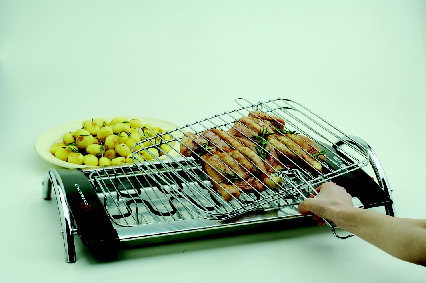 کباب پز برقی مدرن با سینی بزرگ نچسب و دارای سینی مشبک دوطرفه جهت راحت چرخاندن مواد غذائی در حال پخت. مناسب برای استفاده داخل منزل.